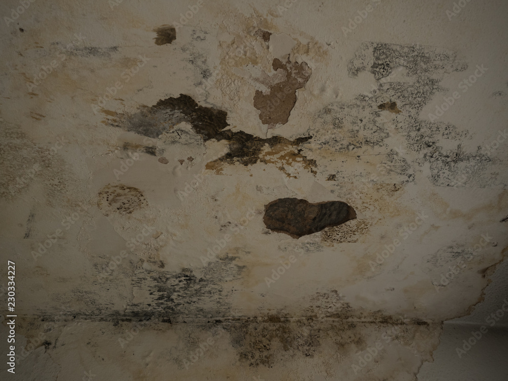 Black Mold And Mildew Spots On Humind Wall Or Ceiling Due To Poor Ventilation Fungus Growth Causing Health Problems After Water Damage Indoor Before Removal Or Anti Mould Treatment Stock Photo Adobe